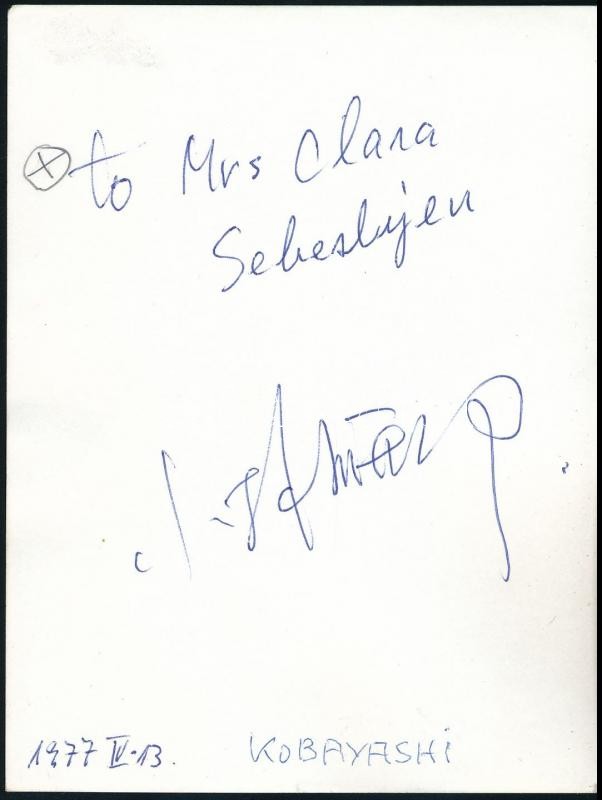 Ken-Ichiro Kobayashi (1940-) japán karmester dedikált fotója / autogra... https://www.darabanth.com/hu/304-Gyorsarveres/304.0/Festmeny-mutargy-papirregiseg-egyeb/Alairas~19/Ken-Ichiro-Kobayashi-1940-japan-karmester-dedikalt-fotoja-autograph-signed-photo-of-Japanese~II1638062