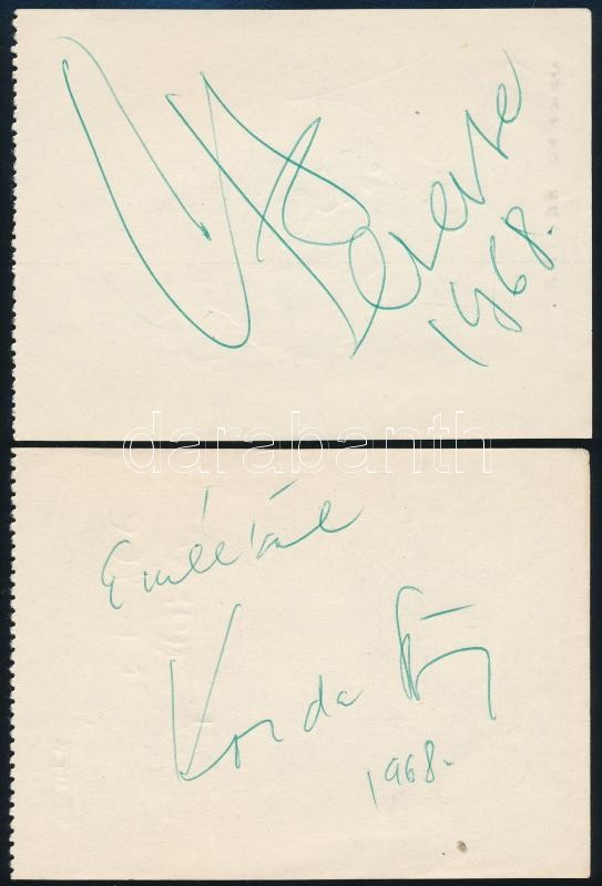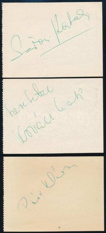 Leírás: Táncdalénekesek aláírásai papírlapokon: Sárosi Kati, Kovács Kati, Poór Klára, Szörényi Levente, Korda György, összesen 5 db