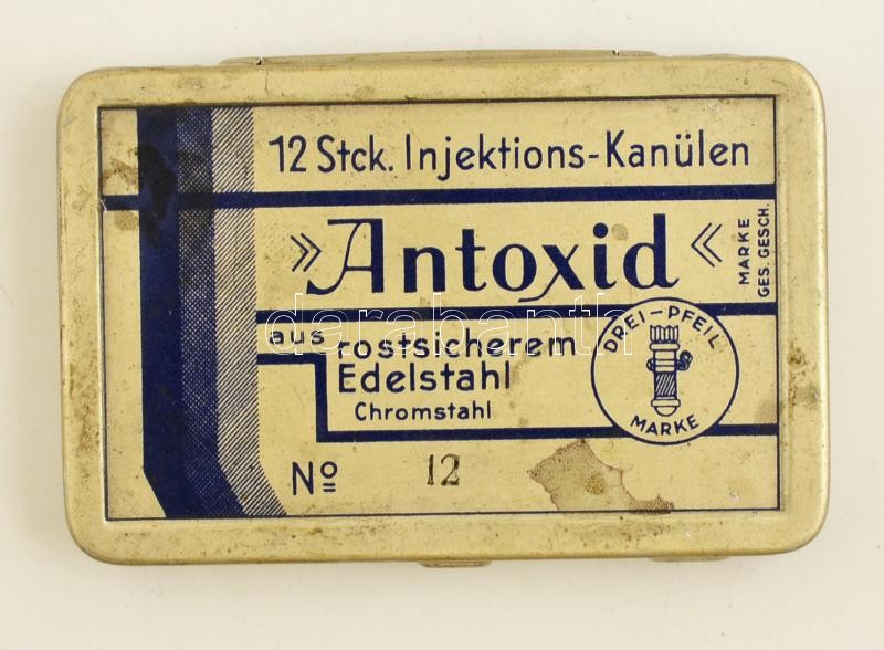 Antoxid injekciós fém doboz, tartalommal https://www.darabanth.com/hu/304-Gyorsarveres/304.0/Festmeny-mutargy-papirregiseg-egyeb/Bolhapiac~11/Antoxid-injekcios-fem-doboz-tartalommal~II1637373
