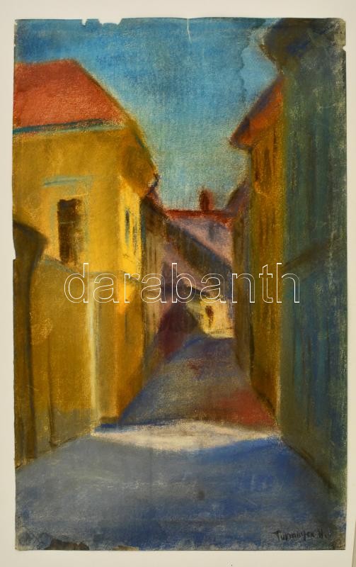 Leírás: Turmayer jelzéssel: Árnyékos utca. Pasztell, papír, apró szakadással, 49×31 cm