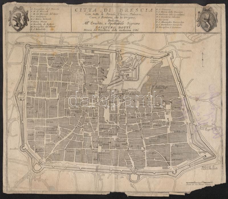 cca 1700 Map of Brescia, copper etching, on paper, with small damages on the edges, 27,5×16 cm