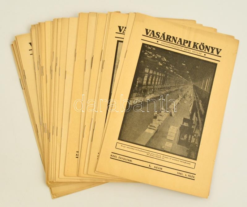 1941-42. Vasárnapi Könyv c. újság teljes két évfolyama. https://www.darabanth.com/hu/304-Gyorsarveres/304.0/Festmeny-mutargy-papirregiseg-egyeb/Nyomtatvanyok~28/1941-42-Vasarnapi-Konyv-c-ujsag-teljes-ket-evfolyama~II1637602