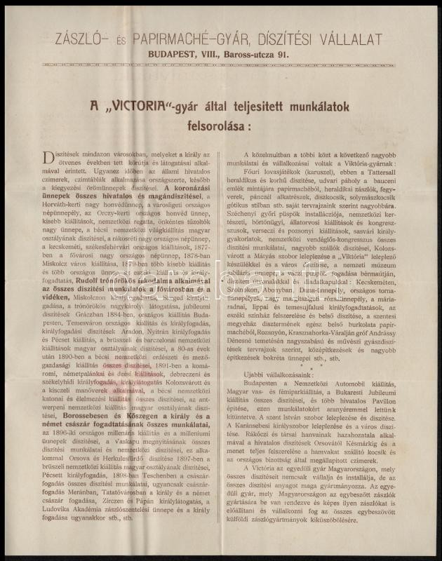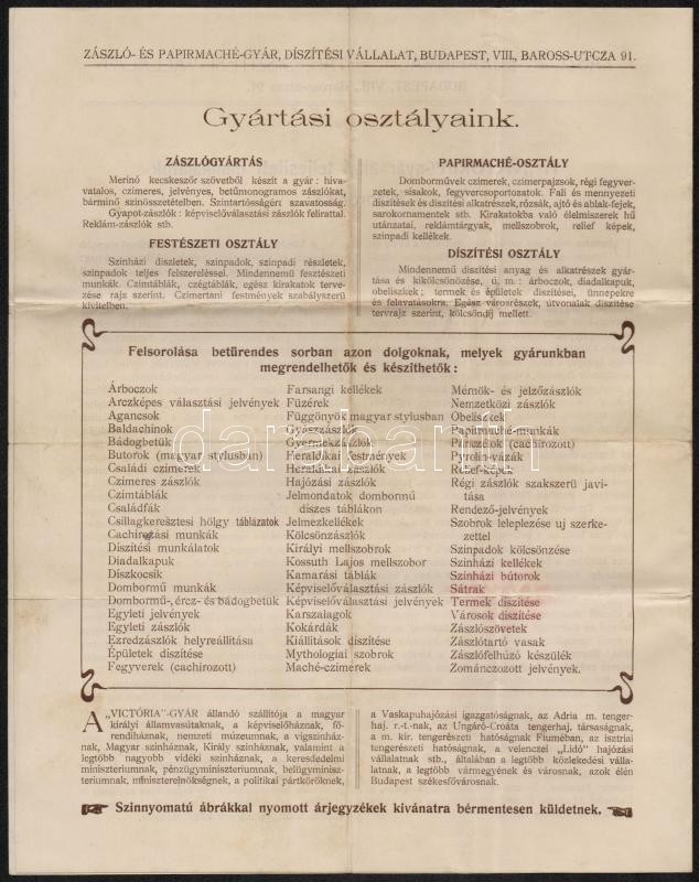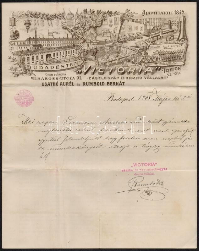 1908 Budapest. Victoria zászlógyár és díszítő vállalat díszes fejlécű ... https://www.darabanth.com/hu/304-Gyorsarveres/304.0/Festmeny-mutargy-papirregiseg-egyeb/Okmanyok~17/1908-Budapest-Victoria-zaszlogyar-es-diszito-vallalat-diszes-fejlecu-szamlaja~II1637608