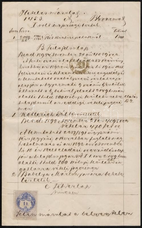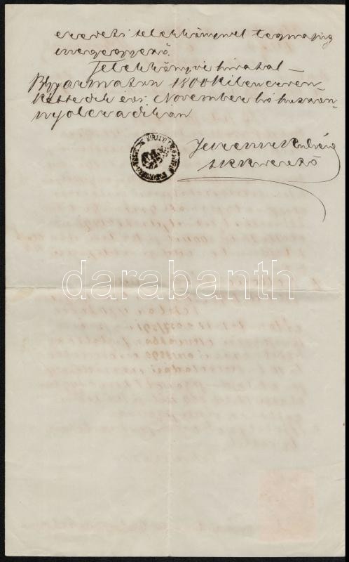 Leírás: cca 1892 Okmány hitelesmásolata okmánybélyeggel
