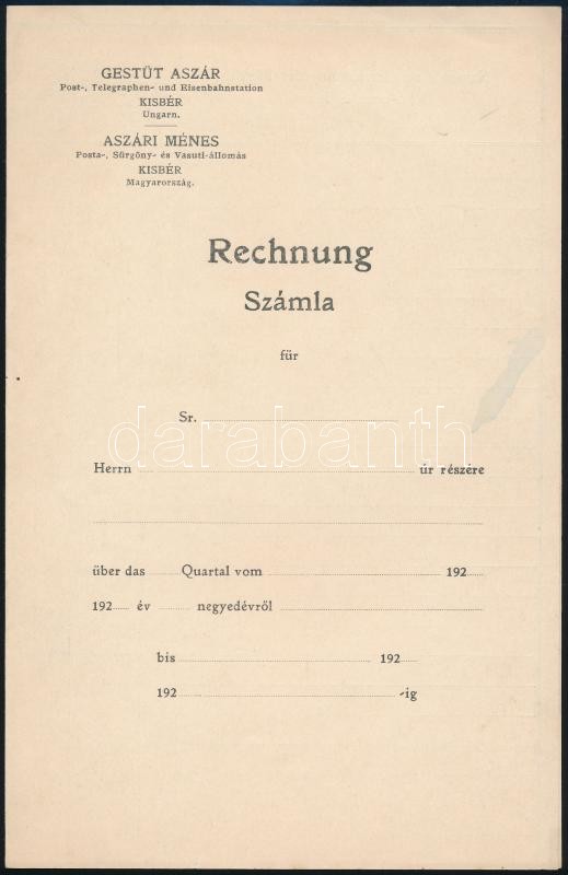 cca 1920 Aszári ménes kitöltetlen számla https://www.darabanth.com/hu/304-Gyorsarveres/304.0/Festmeny-mutargy-papirregiseg-egyeb/Okmanyok~17/cca-1920-Aszari-menes-kitoltetlen-szamla~II1637642