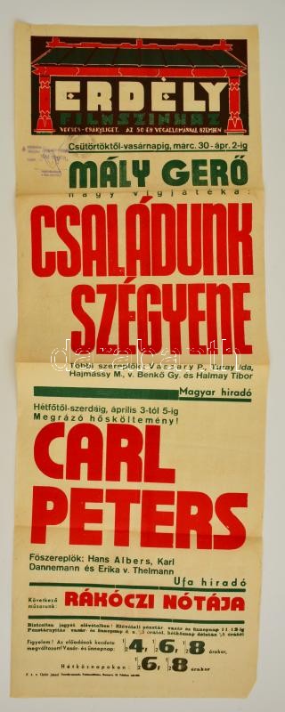 1944 A vecsési Erdély mozi grafikus plakátja. Cenzori engedélyező pecs... https://www.darabanth.com/hu/304-Gyorsarveres/304.0/Festmeny-mutargy-papirregiseg-egyeb/Plakat~29/1944-A-vecsesi-Erdely-mozi-grafikus-plakatja-Cenzori-engedelyezo-pecsettel-31x80-cm~II1637876