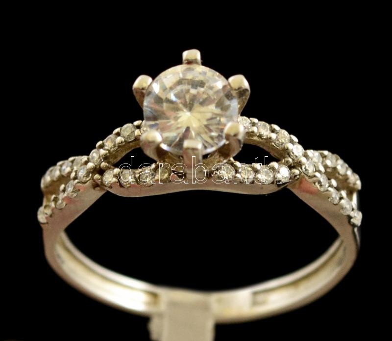 Leírás: Ezüst(Ag) gyűrű, apró szintetikus kövekkel, jelzett, méret: 57, bruttó: 2,1 g