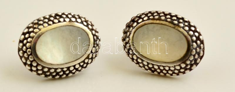 Leírás: Ezüst(Ag) ovális fülbevalópár, gyöngyház díszítéssel, jelzett, 1,6x1,2 cm, bruttó: 4,6 g
