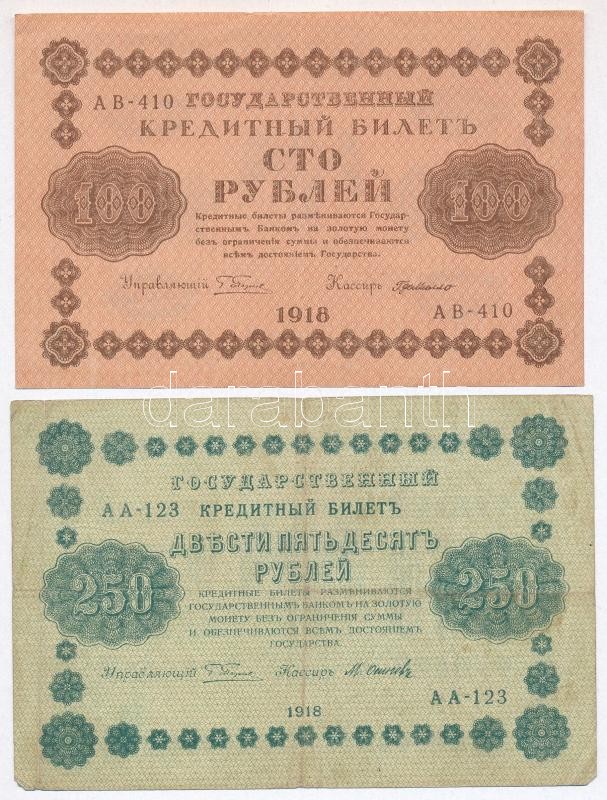 Russian Socialist Federated Soviet Republic 1918. 100 Rubles + 250 Rubles C:F