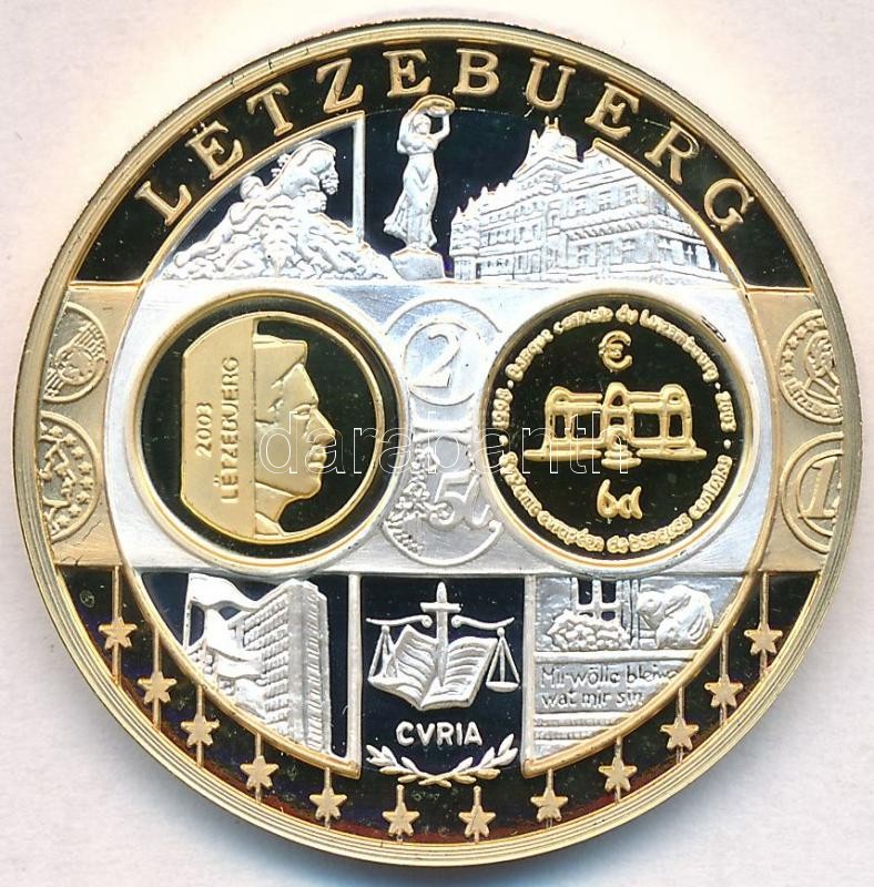 Leírás: ~2002. "Emlékérem az euróövezet országainak közös valutájáról - Luxemburg" aranyozott, ezüstözött Cu-Ni emlékérem (35,1mm) T:PP
