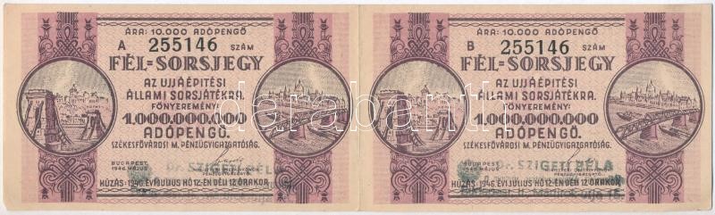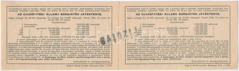 Leírás: 1946. "Fél-sorsjegy az Újjáépítési Állami Sorsjátékra" fél sorsjegy 100.000.000AP értékben, "A" és "B" sorsjegy ívben, felülbélyegzéssel T:I-,II