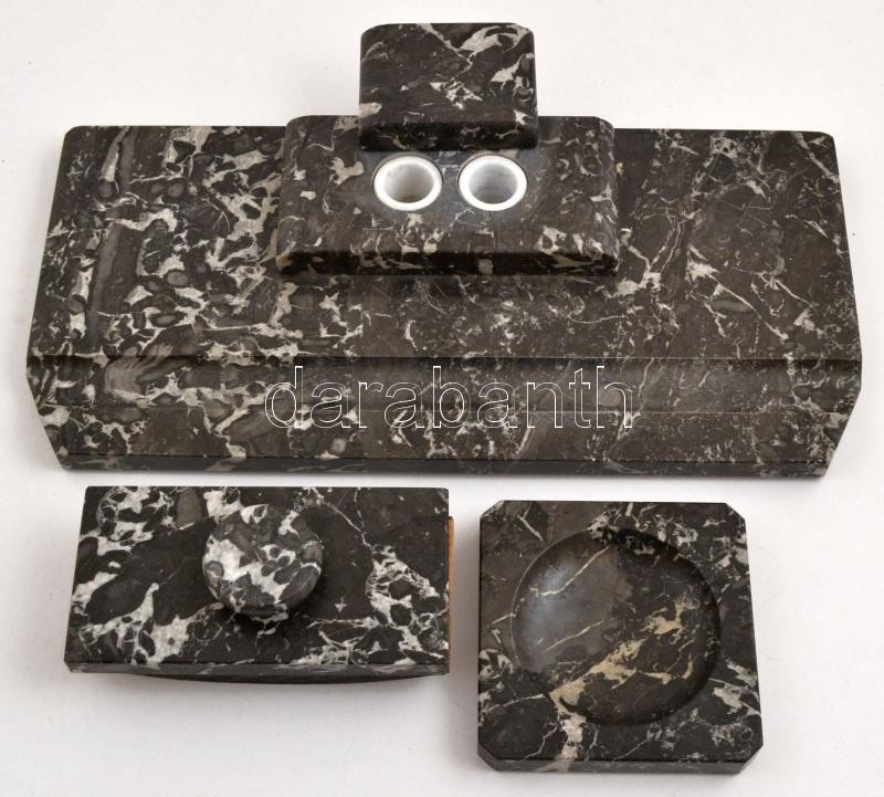 Leírás: Alabástrom íróasztali készlet összesen 3 db, kis kopásnyomokkal, 35×19 cm