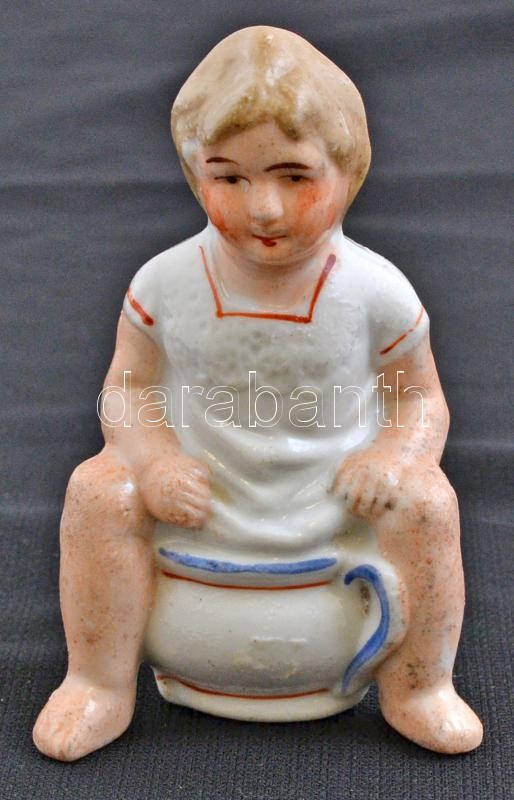 Leírás: Bimbin ülő kisfiú, porcelán persely, m: 9 cm