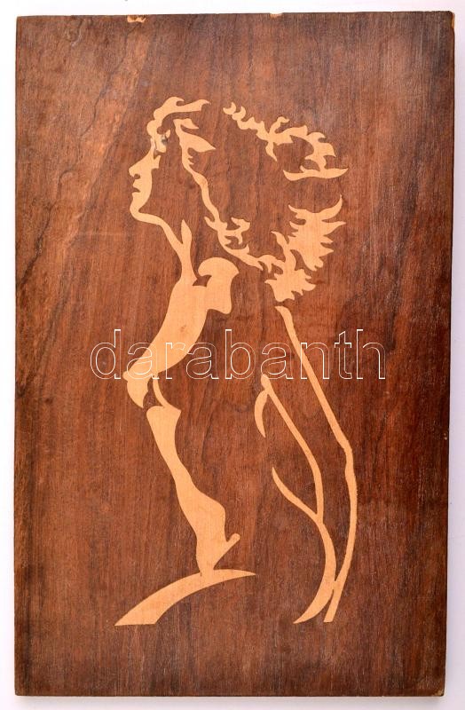 Leírás: Hegedűs Imre (?-): Akt falikép. Fa intarzia, sérült, jelzett, 36×23 cm