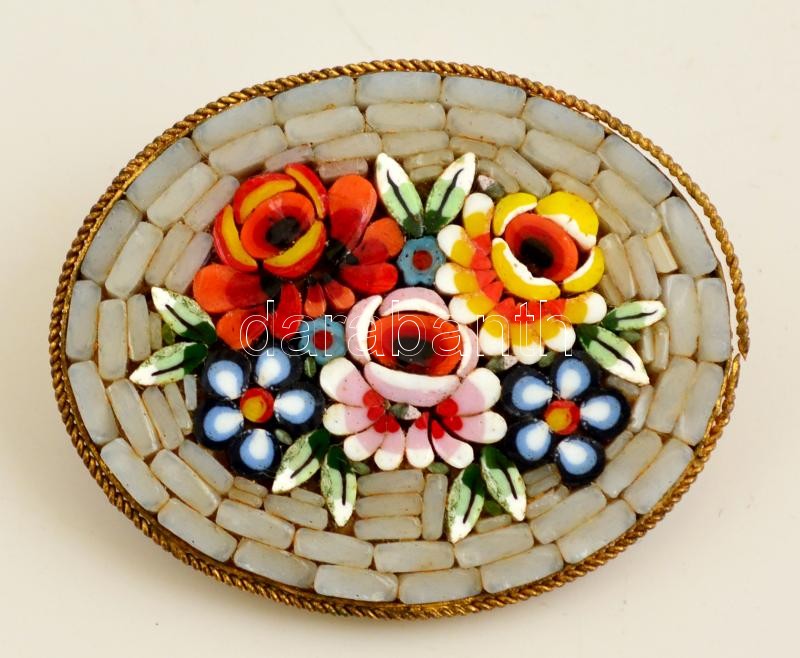 Virágos mozaik kitűző, kis sérüléssel, 3,5x3 cm https://www.darabanth.com/hu/305-Gyorsarveres/305.0/Festmeny-mutargy-papirregiseg-egyeb/Bolhapiac~300011/Viragos-mozaik-kituzo-kis-serulessel-3-5x3-cm~II1648701