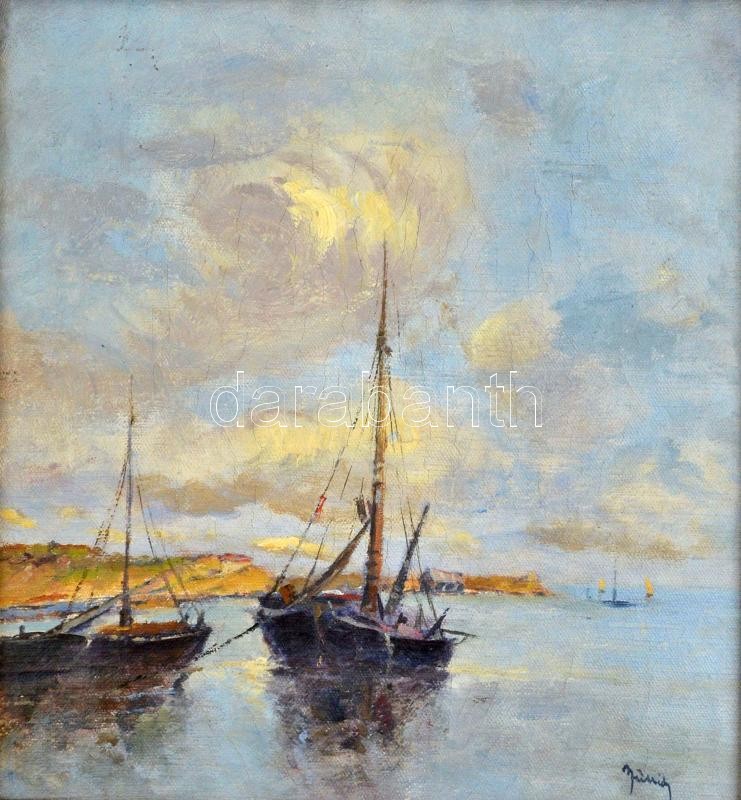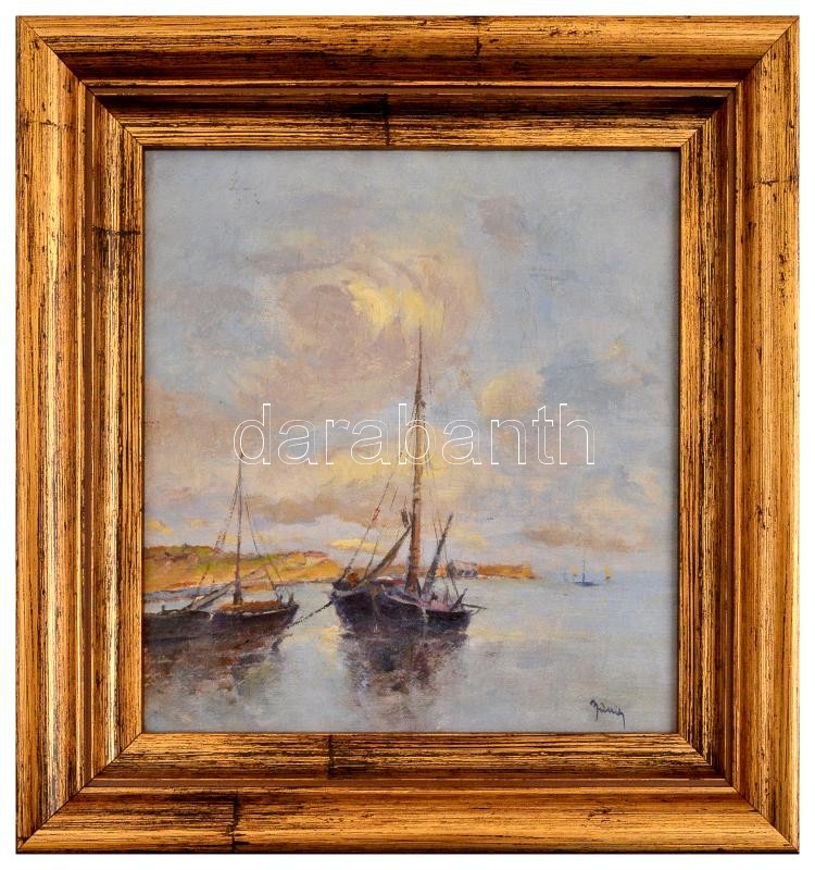 Leírás: Andor Züllich von Züllborn (1870-1933): Vitorlások. Olaj, karton, jelzett, keretben, 24×23 cm