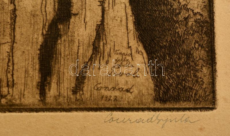 Leírás: Conrad Gyula (1877-1959): Tivoli. Rézkarc, papír, jelzett, keretben, 30×24 cm