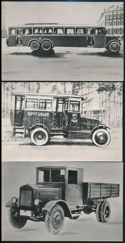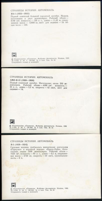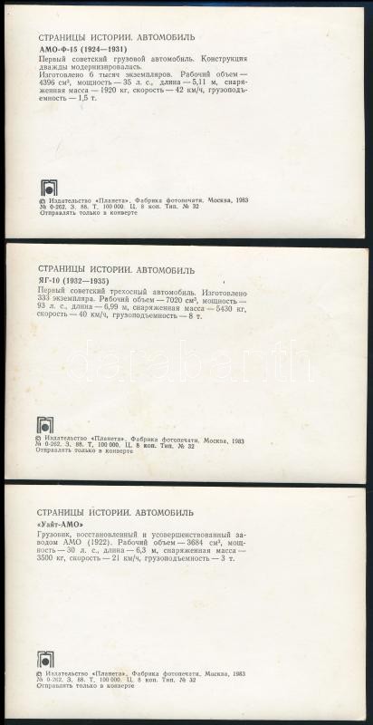 Leírás: 1983 Régi idők kocsija modern fotólapokon, hátoldalon oroszul feliratozva, 7 db, felületükön törésnyomokkal, 9,5x14,5 cm