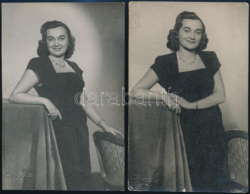 Leírás: Angelo (1894-1974): Hölgy műtermi portréja, 2 db fotó, hidegpecséttel jelzett, 13,5x9 cm