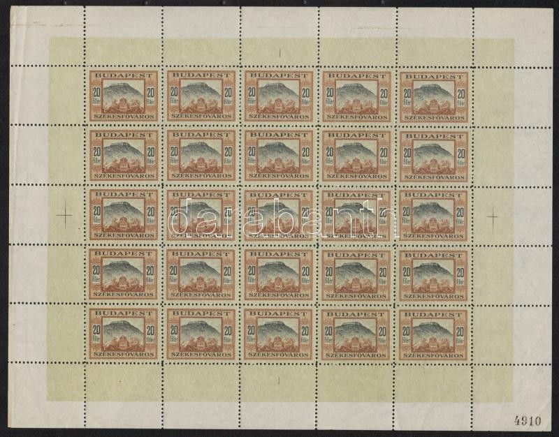 Leírás: 1927 Budapest-Székesfőváros 20f teljes ív, 4910 sorszámmal