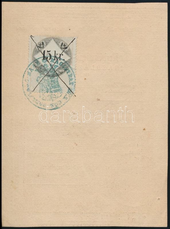 Leírás: 1860 Győr, Igazolási jegy, 15 kr okmánybélyeggel
