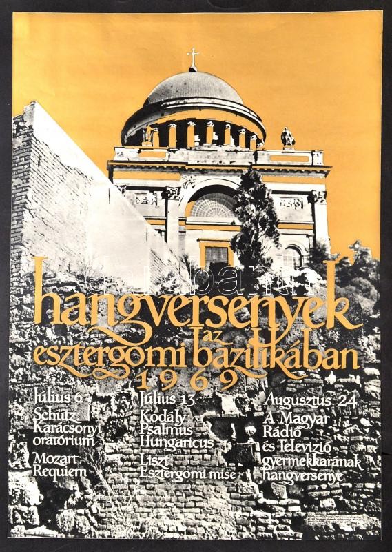 Leírás: 1969 Hangversenyek az Esztergomi Bazilikában, plakát, 67,5x48 cm
