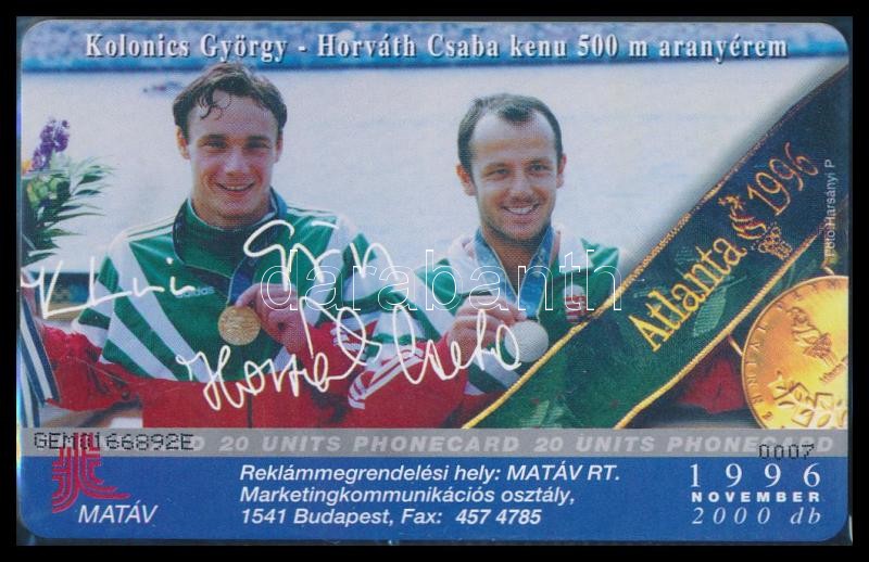 1996 Atlantai Olimpia. Kolonics György, Horváth Csaba, Használatlan, s... https://www.darabanth.com/hu/305-Gyorsarveres/305.0/Festmeny-mutargy-papirregiseg-egyeb/Telefonkartyak~300022/1996-Atlantai-Olimpia-Kolonics-Gyorgy-Horvath-Csaba-Hasznalatlan-sorszamozott-telefonkartya~II1647972