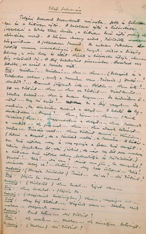 Vaszary János (1899-1963) Cím nélküli három felvonásos színdarabjának ... https://www.darabanth.com/hu/305-Gyorsarveres/305.0/Festmeny-mutargy-papirregiseg-egyeb/Tortenelmi-dokumentumok-keziratok-erdekessegek~300017/Vaszary-Janos-1899-1963-Cim-nelkuli-harom-felvonasos-szindarabjanak-kezirata-vegig-magya~II1645959