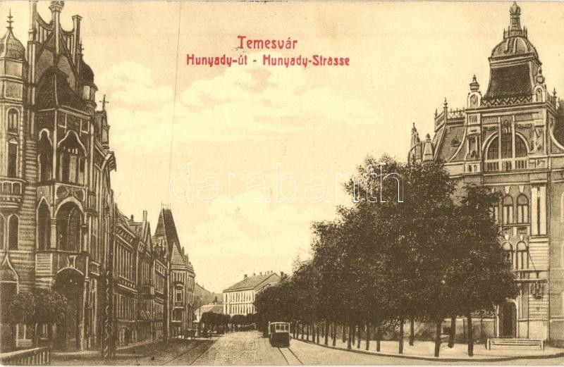 Temesvár, Timisoara; Hunyady út, villamos. Gerő kiadása / street view,... https://www.darabanth.com/hu/305-Gyorsarveres/305.0/Kepeslapok/Erdely~100007/Temesvar-Timisoara-Hunyady-ut-villamos-Gero-kiadasa-street-view-tram~II1646321