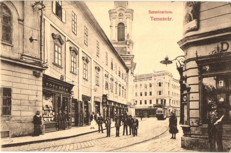 Temesvár, Timisoara; Szeminárium, Tóth Béla, Gresham üzletei, kávéház,... https://www.darabanth.com/hu/305-Gyorsarveres/305.0/Kepeslapok/Erdely~100007/Temesvar-Timisoara-Szeminarium-Toth-Bela-Gresham-uzletei-kavehaz-villamos-Toth-Bela~II1648268
