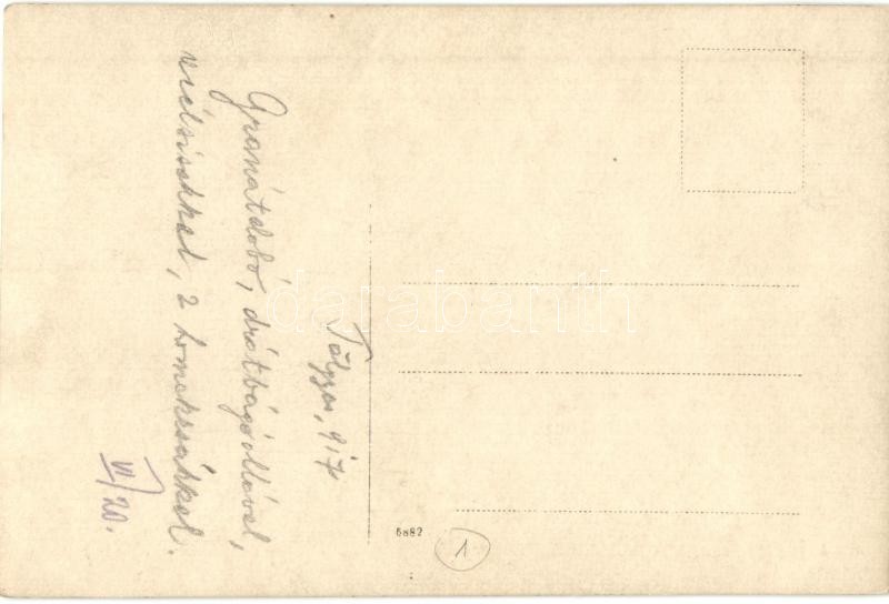 1917 Gyergyótölgyes (Tölgyes), Gránátdobó katona drótvágó ollóval, acé... https://www.darabanth.com/hu/305-Gyorsarveres/305.0/Kepeslapok/Katonai~100072/1917-Gyergyotolgyes-Tolgyes-Granatdobo-katona-drotvago-olloval-acelsisakkal-2-homokz~II1646991