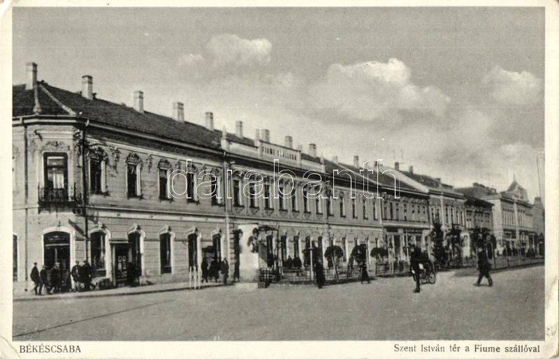 Békéscsaba, Szent István tér, Fiume szálló (EK) https://www.darabanth.com/hu/305-Gyorsarveres/305.0/Kepeslapok/Magyarorszag~100006/Bekescsaba-Szent-Istvan-ter-Fiume-szallo-EK~II1644525