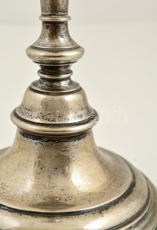 Leírás: Ezüst (Ag.) gyertyatartó, jelzett, mesterjeggyel (TD), m:25 cm, nettó:213 g