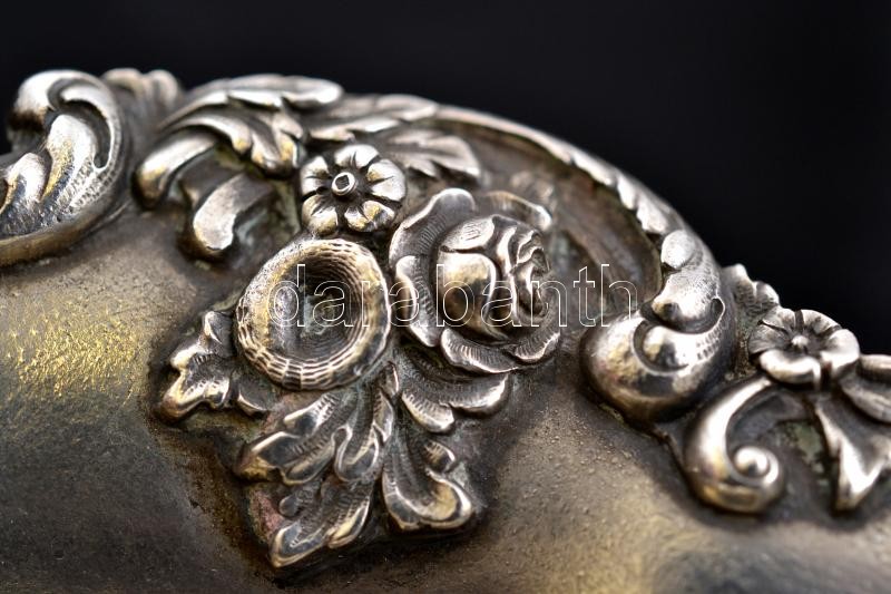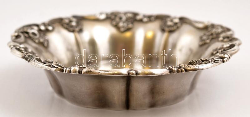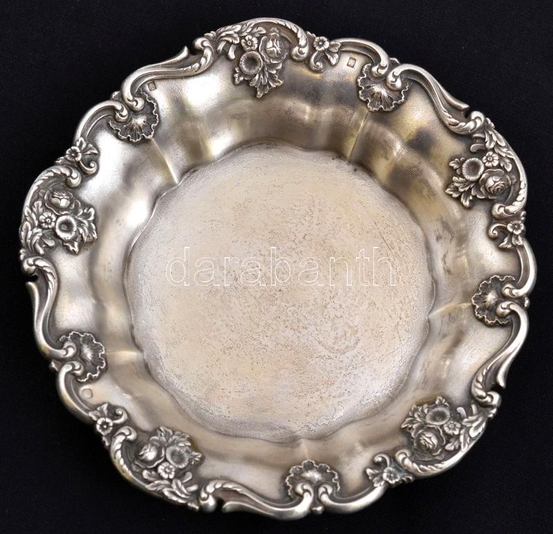 Leírás: Ezüst(Ag) belga virágmintás peremű kerek kínáló tál, jelzett, d: 17 cm, nettó: 392 g