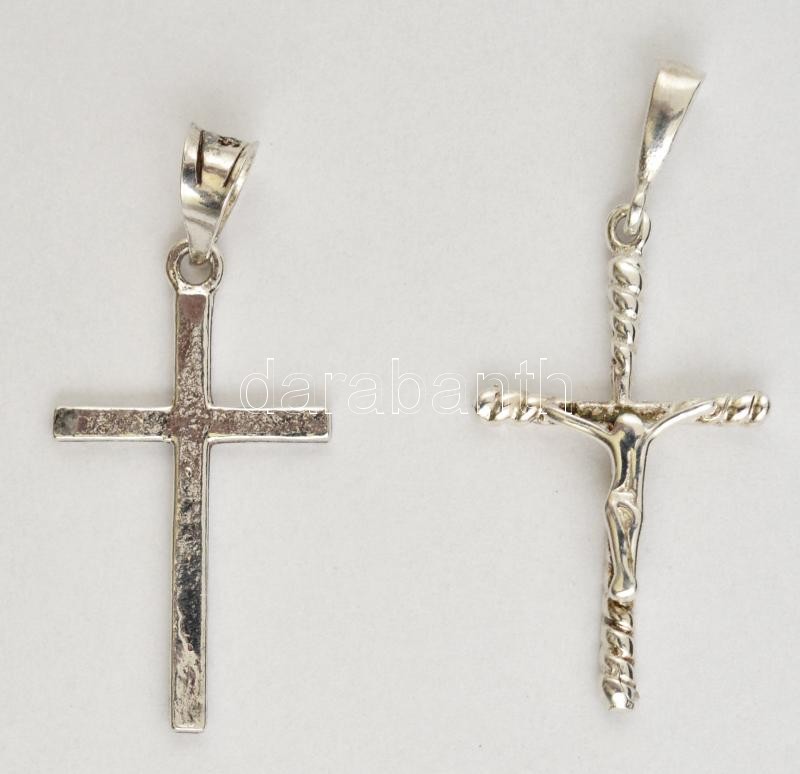 Leírás: Ezüst(Ag) kereszt függő, 2 db, jelzett, 3,3x1,5 cm, nettó: 2,2 g