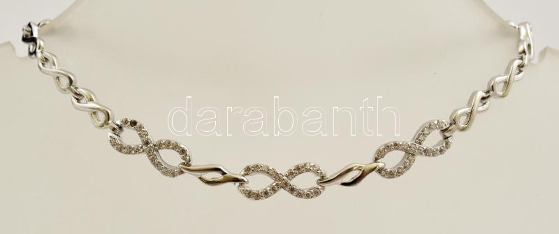 Leírás: Ezüst(Ag) "végtelen"-mintás, köves karkötő, jelzett, max. h: 17,5 cm, bruttó: 4,8 g