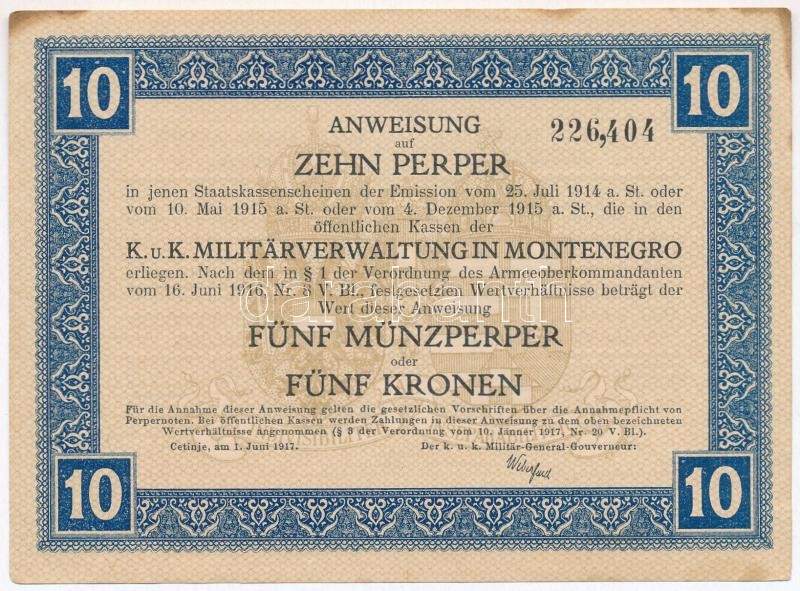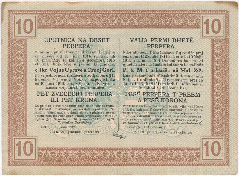 Montenegró / Császári és Királyi Katonai Közigazgatás 1917. 10P T:I-,II hajtatlan, fo.
