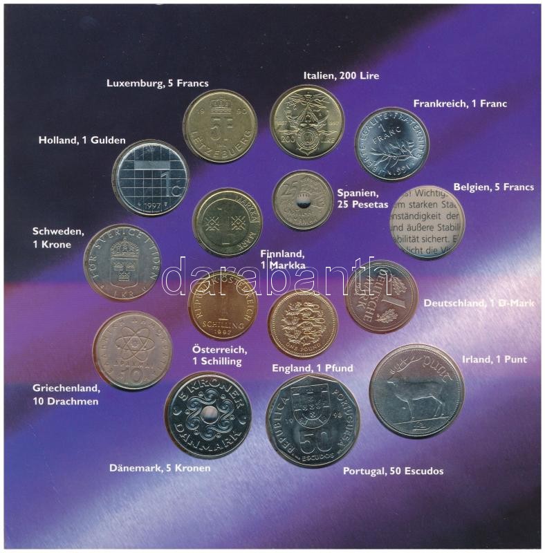 DN "Európai Országok érmei" 14db-os szett eredeti tokban, a belga 5Fr hiányzik T:1-,2