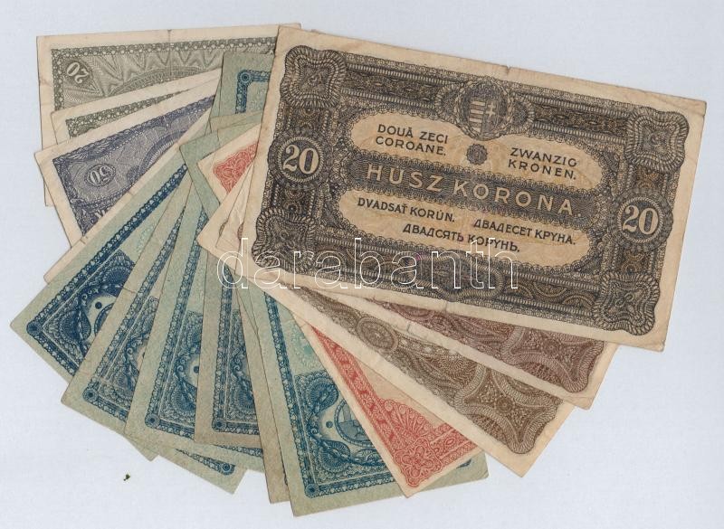 Leírás: 1920. 15db-os korona bankjegy tétel T:II-III