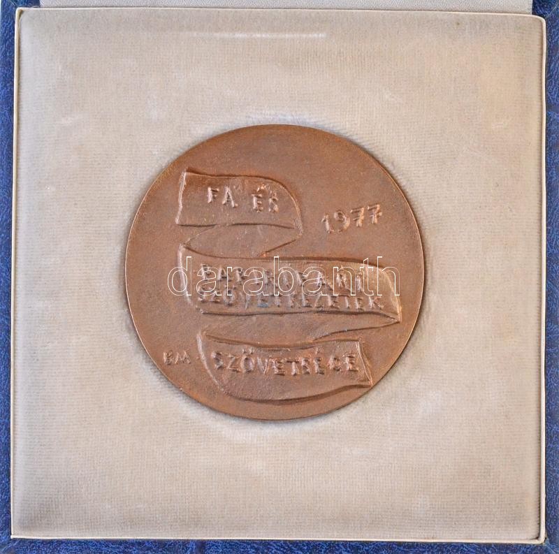 Leírás: Borsos Miklós (1906-1990) 1977. "Fa és Papíripari Szövetkezetek Szövetsége" Br plakett, eredeti dísztokban (81mm) T:2