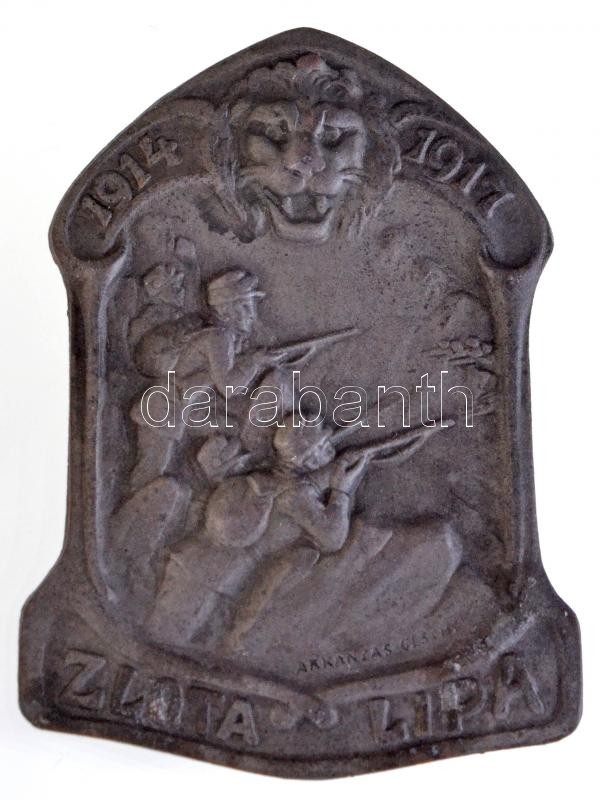Leírás: ~1917. "1914-1917 Zlota Lipa" fém jelvény "ARKANZAS CESCM" gyártói jelzéssel (29,5x40mm) T:2