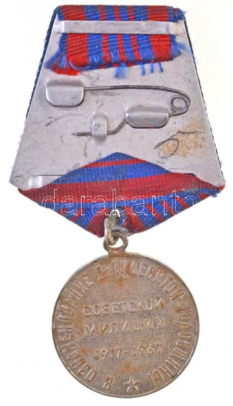 Szovjetunió 1967. "Jubileumi Érem - 50 éves a szovjet Milícia" ezüstözött kitüntetés mellszalagon T:2 fo.