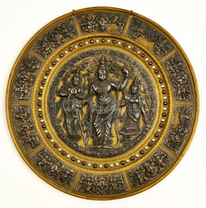 Leírás: Indiai préselt réz falitányér, d:23,5 cm