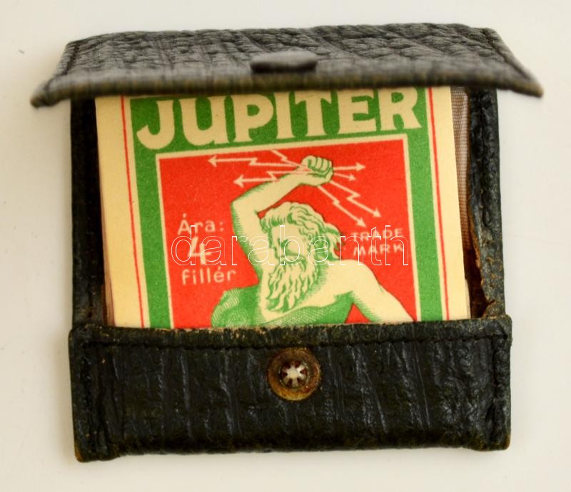 Jupiter gyufa, bőr gyufatartóval, hiánytalan, jó állapotban, 5,5x6,5 c... https://www.darabanth.com/hu/306-Gyorsarveres/306.0/Festmeny-mutargy-papirregiseg-egyeb/Bolhapiac~100014/Jupiter-gyufa-bor-gyufatartoval-hianytalan-jo-allapotban-5-5x6-5-cm~II1655713