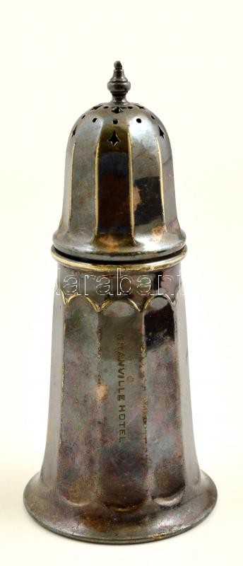 Leírás: Mappine& Webb's prince's plate Sheffield alpakka cukorszóró, jelzett, "Granville hotel" felirattal, m:16 cm