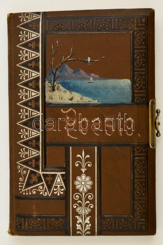 Leírás: cca 1890 Kitöltetlen emlékkönyv két litho képpel, festett egészvászon kötésben, jó állapotban