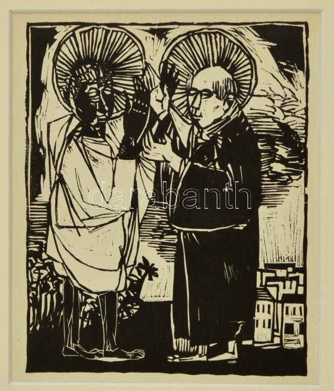 Kondor Béla (1931-1972): Illusztráció Léopold Sédar Senghor: A martalóság álldozatai c. verséhez. Fametszet, paszpartuban, hátoldalán feliratozva,13,5x11 cm