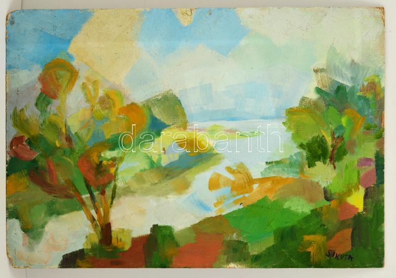 Sikuta jelzéssel: Kilátás a folyótorkolatra. Olaj, farost, 55×80 cm https://www.darabanth.com/hu/306-Gyorsarveres/306.0/Festmeny-mutargy-papirregiseg-egyeb/Festmenyek-es-grafikak~100001/Sikuta-jelzessel-Kilatas-a-folyotorkolatra-Olaj-farost-55C39780-cm~II1653881