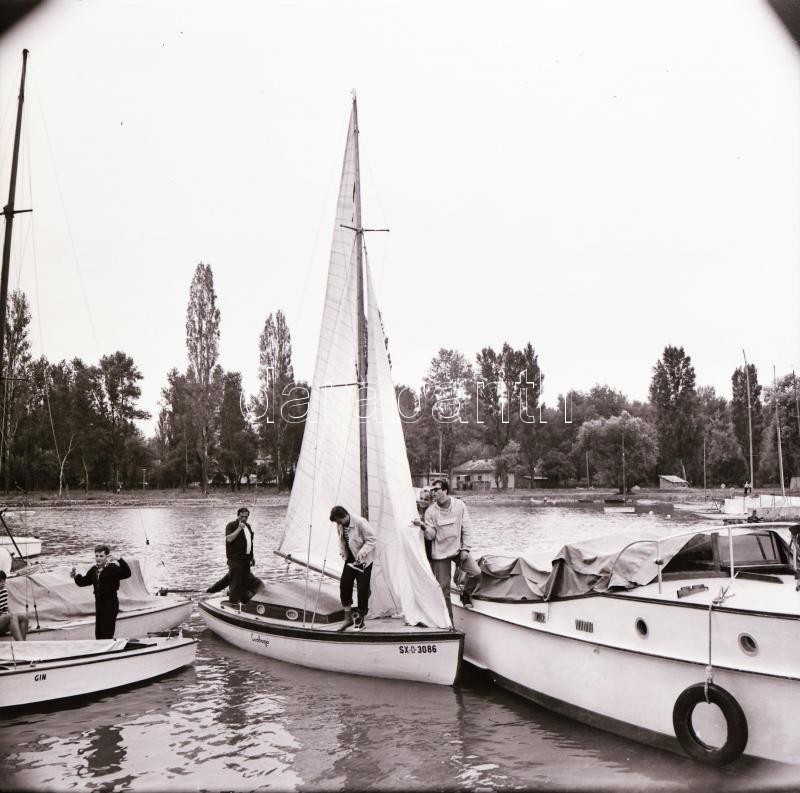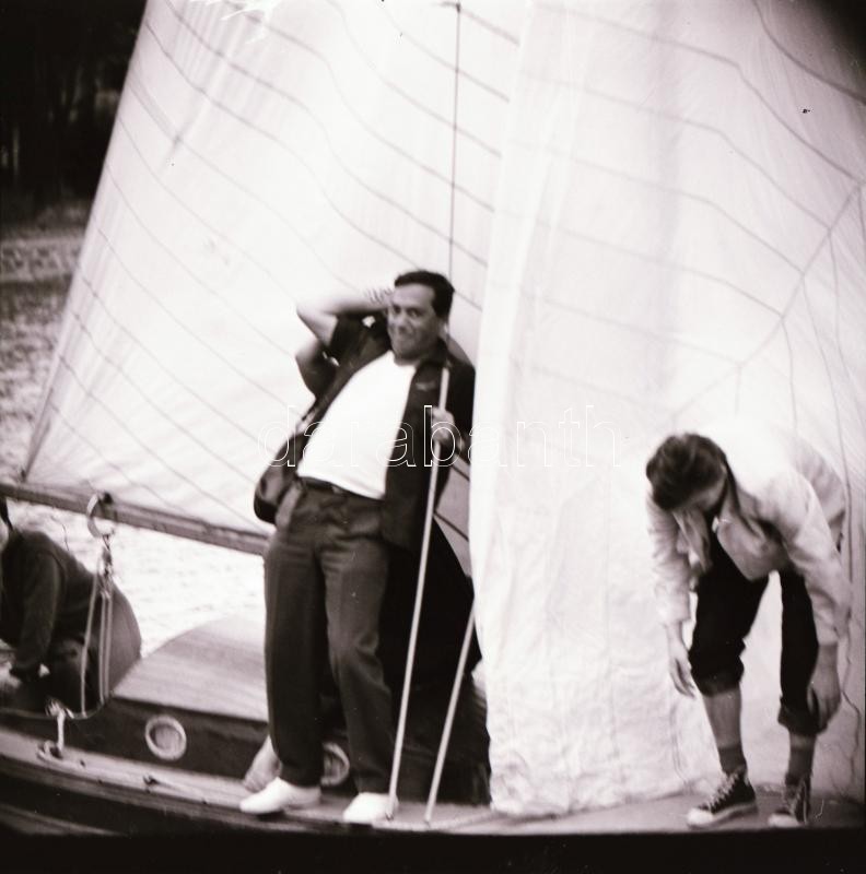 1966 Balatoni vitorláskikötőben Bujtor István színész, Kotnyek Antal (1921-1990) fotóriporter hagyatékából 12 db professzionális minőségű,vintage negatív, 6x6 cm