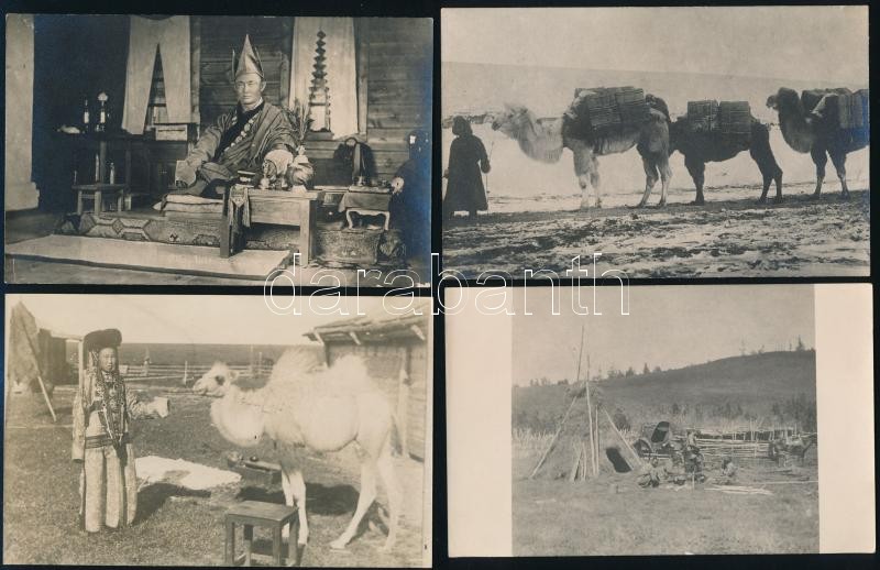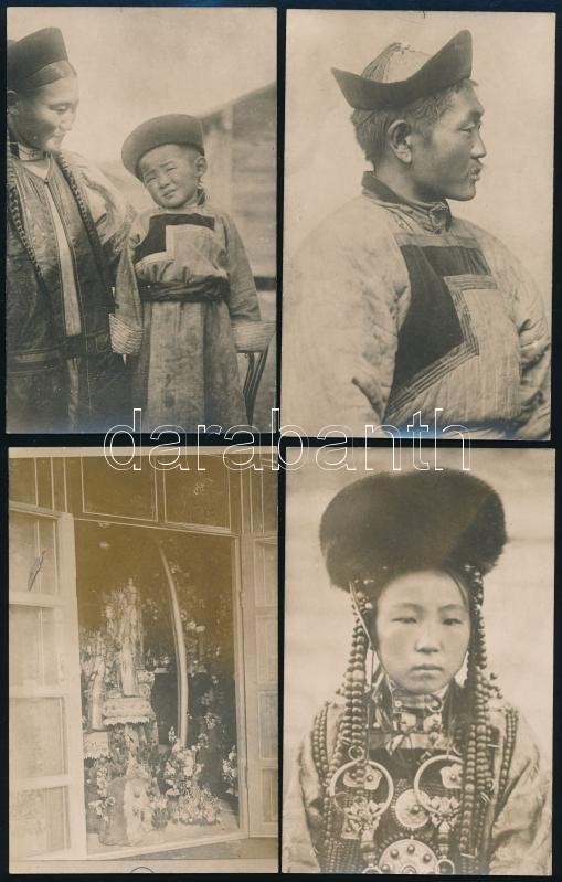 Leírás: cca 1916 Mongólia 17 db eredeti fotó képeslap méretben népviseletben lévő emberek, tárgyak / Mongolia 17 original photos in the size of a postcard.